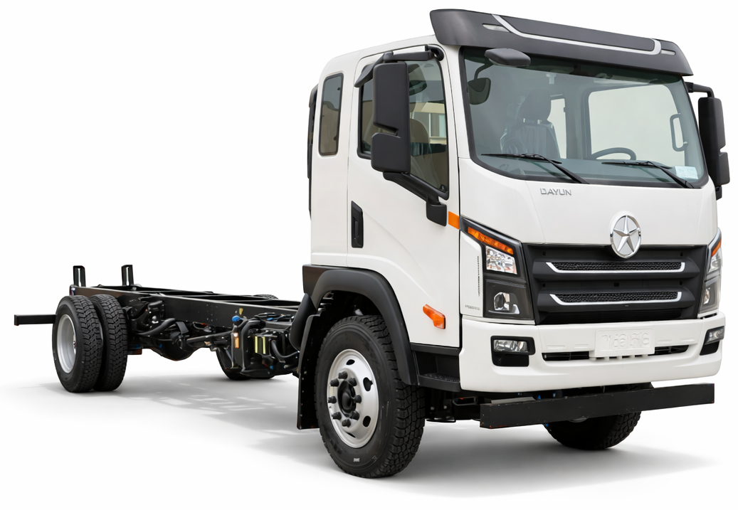 Шасси DAYUN X120 CGC1120A — это высокоэффективное и надежное транспортное решение, предназначенное для разнообразных коммерческих задач. Модель X120 CGC1120A оснащена удобной двухместной кабиной 2030 с уютным спальным местом, обеспечивающим комфортные условия для водителя во время продолжительных поездок. Общий вес шасси составляет 3.89 тонны, что делает его легким, но при этом достаточно мощным для перевозки грузов до 12 тонн.